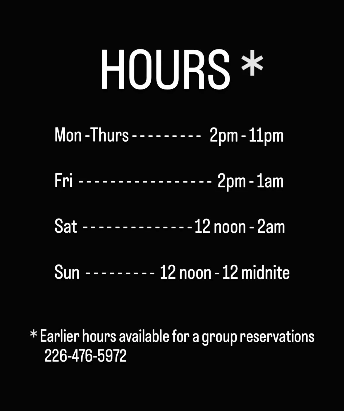 Call, email or dm to inquire about large group reservations.